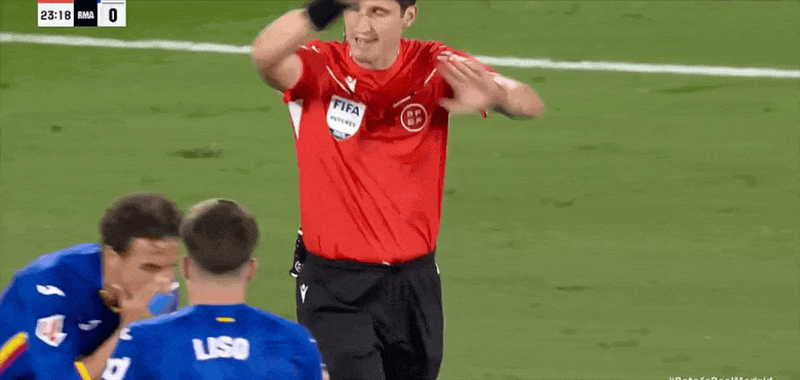 屢次倒地未判+關(guān)鍵紅牌改變走向,回顧皇馬vs赫塔菲裁判爭議