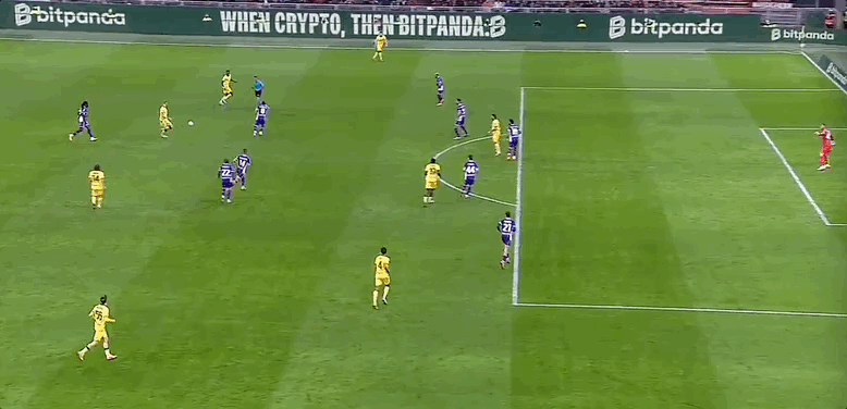 32’半小時(shí)僅兩腳射門,米蘭依舊后場(chǎng)耐心傳遞倒腳