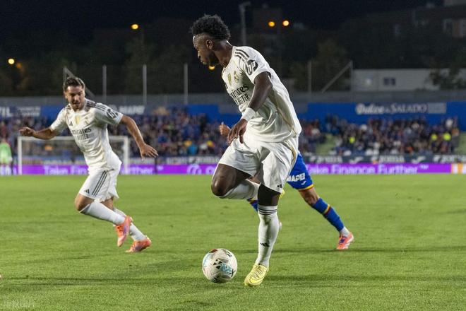 昨天巴薩先賽壓哨絕殺贏球,暫時(shí)超過皇馬登頂,皇馬今天作客阿方索佩雷斯球場(chǎng),必須得拿下赫塔菲,才能再超過巴薩奪回榜首。開場(chǎng)后皇馬就反客為主展開猛烈攻勢(shì),第7分鐘,皇馬左路快攻,維尼修斯拿球推進(jìn)精妙直塞,姆巴佩禁區(qū)前沿接球突入禁區(qū)獲得半單刀良機(jī),只不過姆巴佩未能把握機(jī)會(huì),大力推射被門將索里亞奮勇?lián)涑觥?分鐘后皇馬幾乎一樣的進(jìn)攻,姆巴佩還是禁區(qū)前沿接球,晃開回防2人后大力低射,皮球幾乎是擦著遠(yuǎn)端門柱外側(cè)出了底線。